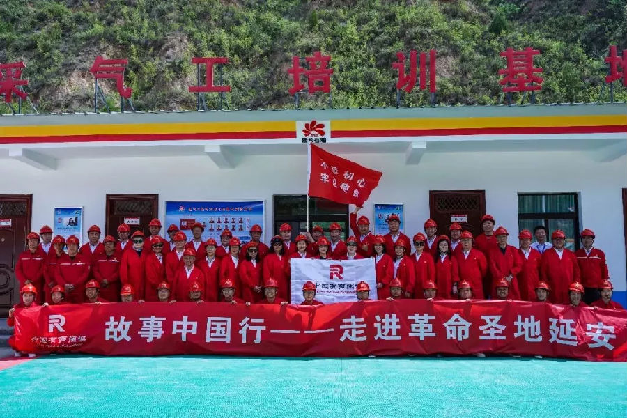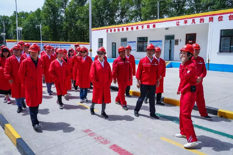 在延长石油集团油气勘探公司采气一厂12号集气站,大家“披上红袍”,了解了延长集团目前的集气工艺流程。