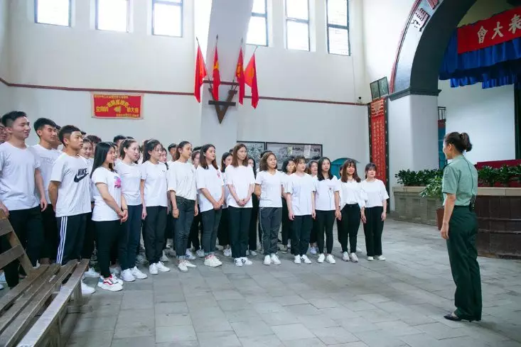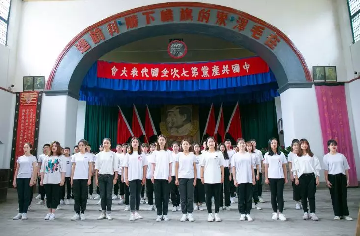 “从小爷爷对我说,吃水不忘挖井人,曾经苦难才明白,没有共产党哪有新中国……”,由50名大学生组成的合唱团深情的歌声回荡在“七大”会址。合唱团在杨家岭、枣园等革命旧址,唱响《在灿烂的阳光下》,现场群众纷纷汇聚,情不自禁跟着音乐共同歌唱。