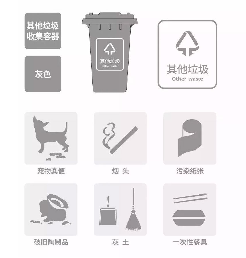简单来说,其他垃圾就是除了有害垃圾、可回收物、厨余垃圾之外的垃圾。最没有存在感,所以要丢进灰色的桶里。