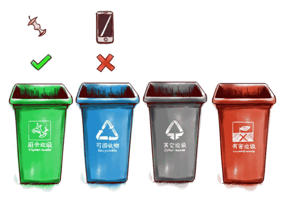 我们平常生活中的垃圾可以分为四大类:有害垃圾、可回收物、其他垃圾以及厨余垃圾。