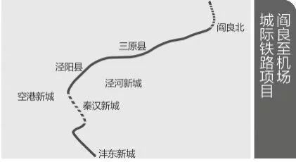 阎良至机场城际铁路位于关中北部,正线与西韩城际铁路贯通,线路从独李北引出,经三原、泾阳、泾河新城、空港新城、秦汉新城、经机场折向南至终点渭河桥、预留向南延伸至阿房宫站、西安南站的条件。