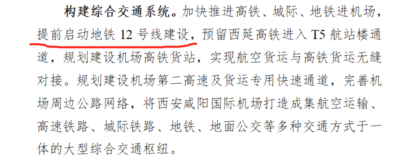 在西安咸阳国际机场修建高铁货站,推动西安机场与西安北站高铁枢纽站紧密对接,实现航空货运与高铁货运无缝对接。重点推进西安北-咸阳机场、阎良-咸阳机场、西安-韩城城际铁路建设。