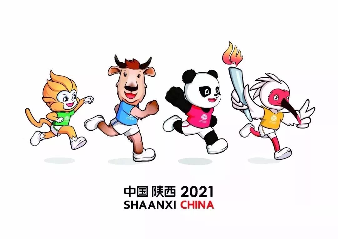 吉祥物设计方案是以陕西秦岭独有的四个国宝级动物“朱鹮、大熊猫、羚牛、金丝猴”为创意原型,设计了一组幸福快乐、充满活力、精神焕发、积极向上的运动吉祥物形象。