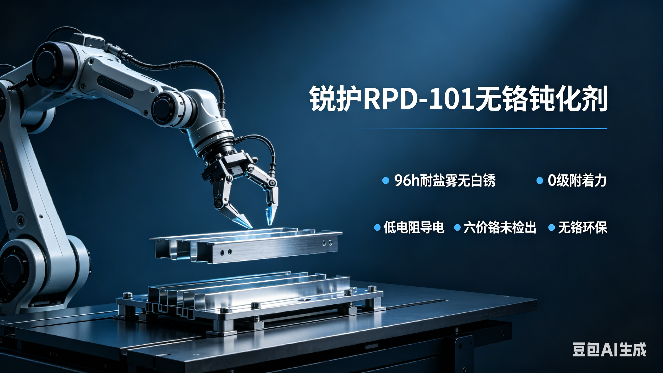 针对行业高端痛点,陕西锐护新材料项目研发团队经过长期配方攻关与工况验证,自主研发RPD-101无铬导电防腐一体化转化剂,跳出传统单一防腐技术路线,构建全新复合纳米成膜体系。产品不含六价铬及有害重金属,环保合规;金属基材表面形成均匀致密纳米防护膜,在实现长效防锈耐蚀的同时,保留稳定基体导电性能,完美解决传统钝化膜绝缘阻隔、无法满足电气接地、电磁兼容工况使用的行业痛点。